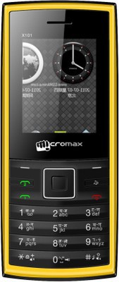 The Micromax X101i yellow features 1.77-inch TFT Display, having alphanumeric keypads, it has Dual SIM functionality (GSM+GSM) and 16MB RAM-32MB ROM expandable up to 8GB via microSD card and has 0.08MP primary camera (Video support- 3GP,MP4) with the Mp3 player, GPRS Enabled. Additional feature which you will get it are Conference call, Bluetooth, USB connectivity, Speed dialing, loudspeaker, 250 phone book memory, call memory & 50 SMS memory, 10 call blacklists, voice recording, Battery 1000 mAh etc.