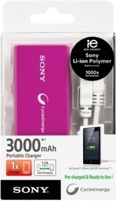 Sony CP v3AVC Power Bank Voilet equipped with power source 3000 mAh and having connectors (Micro-B USB, Mini USB), Power output 5v with the Li-Ion Battery type. one will get 1 year manufacturer warranty with the connectors, from this one can easily charge others models like iPod & iPad, MP3 & MP4, Mobile phone and much more through power source DC Adapter. This Power bank is specially design in that way, no one ever has to face any difficulty in terms of carrying it or charge any handset.